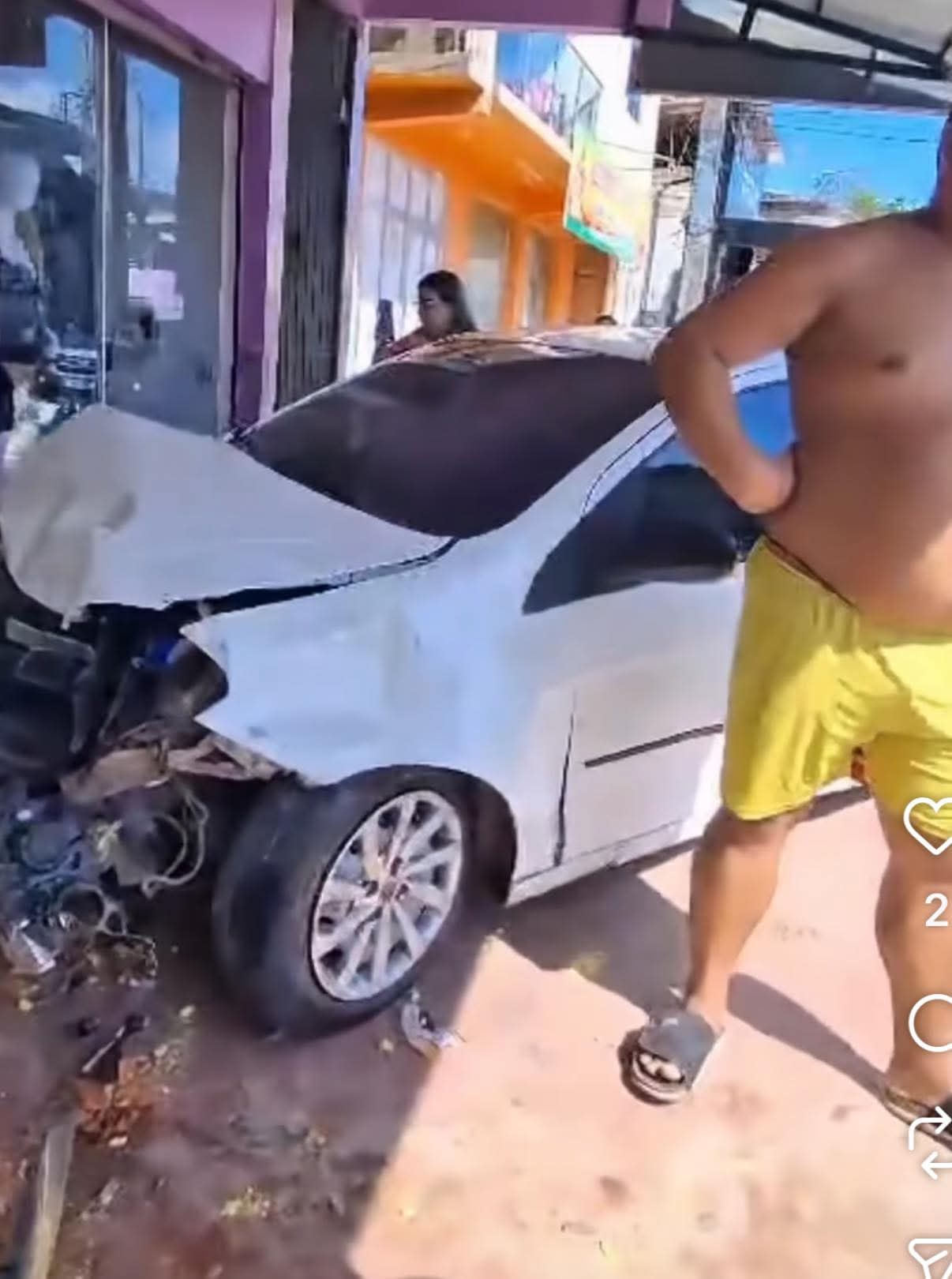 Na manhã desta segunda-feira (12), um acidente de trânsito foi registrado no bairro Araxá, zona sul de Macapá. Um veículo Fiat Punto, de cor branca, invadiu um ponto comercial após o motorista perder o controle da direção ao fazer uma curva.